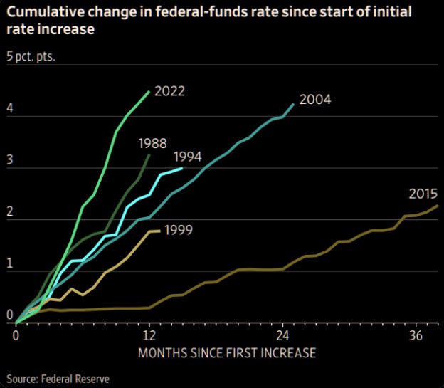MBCC has been talking about this since most of 2022….Do we really think the largest and fastest, most restrictive tightening in history of US financial markets, as shown above, moving from 0-5.5% rates in less than 12 months, will just magically lead to a soft landing/no landing without any skeletons in the closet? Impossible!