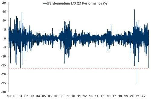 Going back tot he markets, just to show you how violent the move of the last week has been, see chart above showing the stunning chart from Morgan Stanley according to which high-momentum L/S funds had just suffered their 2nd worst 2-Day drop in the past 20 years! These are NOT normal markets as moves like this DO NOT MEAN the start of a new trend, in fact, it is a blow up, and like 2008 and other crisis, there will be quite a few before the market bottoms.