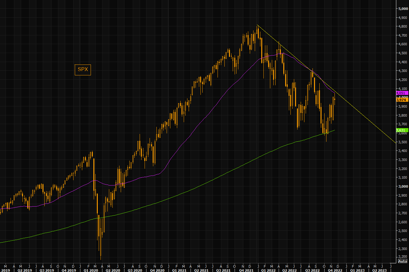 We have the Thanksgiving week long holiday weekend which is usually when we see a lot of year end related selling as it is year end for a lot of Funds. Then we have the CPI for November released on the December 12th, followed by a Dec Fed FOMC on the 15th, and of course OPEC meeting in early December. But our view is the same, we think prices need to keep falling as growth is slowing down and we are moving to deflation from inflation. The Fed will NOT and CANNOT pivot till prices come down or inflation comes down. The Fed never pre-empts, it just waits for the data, which means it has to happen for them to think if their work is done or not!