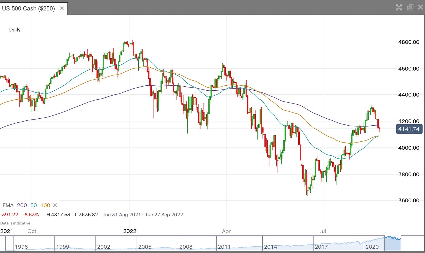 As our subscribers know, we went short the S&P 500 when it touched 4300, as shown above, it has sold off right on queue heading back down to test the 100 day moving average now. This rally has been nothing other than a combination of extreme bearish positioning at the end of July as we went into the Fed July FOMC meeting combined with a quiet summer August month that made the rally self-fulfilling. August is always a tricky money as most are away and the computers are left to play the market and move it in the direction which may be illogical and irrational, outside of the true fundamental story. The blame is placed on how the Fed minutes were not as “dovish” as believed back in July when Powell presided over the FOMC meeting. In our view, the market chooses to hear what it wants to, based on the timing and positioning prevalent in the market at the time. There really has been NO change in Fed messaging, but the market bounced back in July claiming the Fed was a tad bit dovish, only to sell off today claiming that it was actually a bit hawkish. The only difference is the positioning and the level the market got to to reach those conclusions.